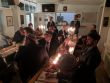 Dabei benutzt er die Analogie des kommerzialisierten Fußballs und die der sozialen Vereinsamung in unserer Gesellschaft. Zwei Phänomene, denen wir als Wertegemeinschaft nicht einfach so erliegen dürfen. Stattdessen geben wir, die Teilnehmer der Kneiptafel, uns dem nächsten Lied hin, welches mit etwas mageren Gesangskünsten beginnt. Es erklingen die ersten drei Strophen des Liedes „Sind wir vereint zur guten Stunde“ bevor ein erstes allgemeines Tempus ausgesprochen wird. Der Grund dafür liegt an den Kneipgästen, die erst jetzt den Platz an unsere Tafel gefunden haben. Mit einem geziemten Streifen, damit ihre Stimmbänder optimal geschmiert sind, pauken Sie sich ein, auf dass die vierte bis sechste Strophe mit neuer Verstärkung erklingen mag.