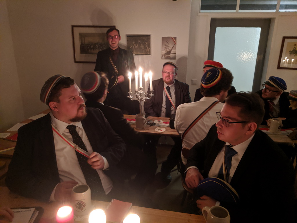 Abgerundet mit Wortmeldungen von Tox, Justus und Barbarossa, haben wir unser Farbenlied ertönen lassen. Auch wenn nicht jeder Teutone ein guter Sänger ist, füllt das Lied jedes Mal die Hallen unserer Konstanten mit Kraft und Ehrfurcht, die man spüren kann. Das darauf von Borsti angeschlagene Kolloquium bot uns die Möglichkeit unsere Stimmbänder zu ölen und mit unseren verspäteten Kneipgästen ins Gespräch zu kommen.